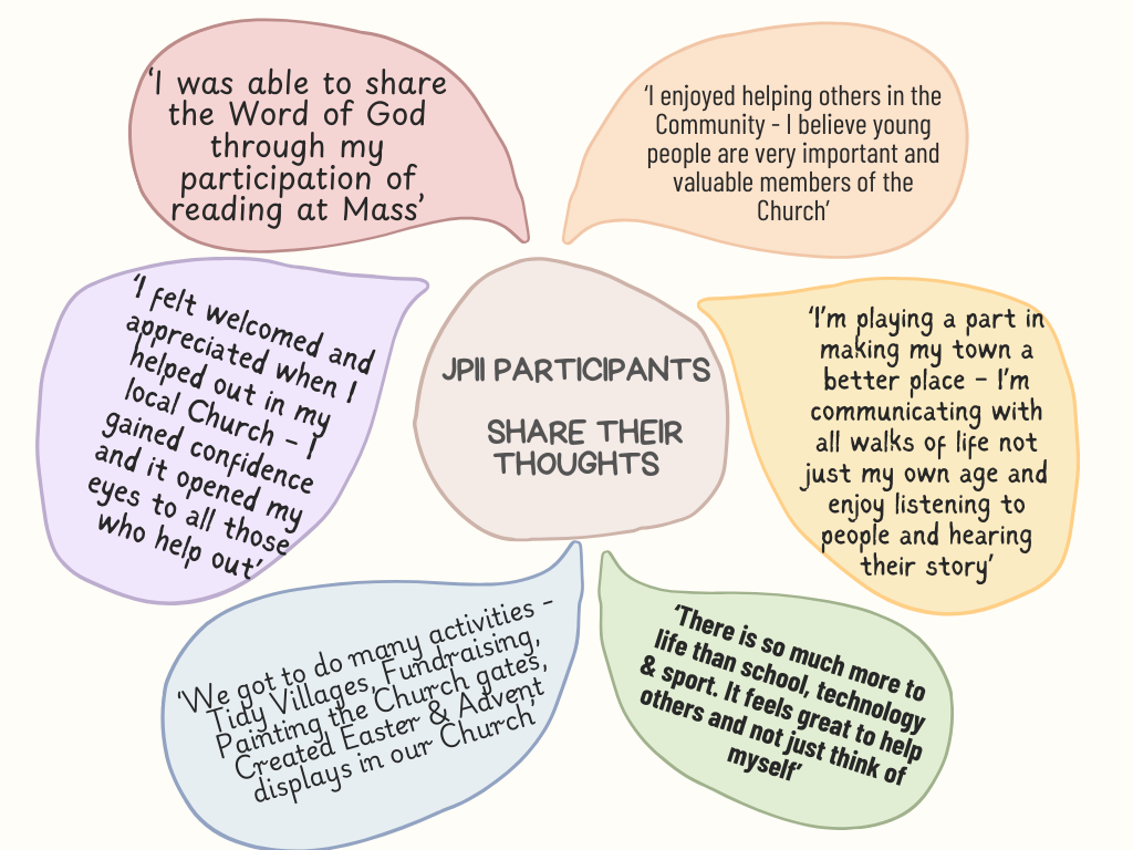 It enables young people to take an active part in the life of the Church, their community and wider society, and to engage deeply with Christ and the teaching of the Catholic Church. (Pope John Paul II Award)